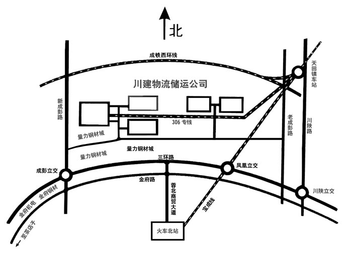 川建物流公司地理位置得天独厚,地处成都市外北洞子口生资、建材、机电市场黄金地段,三环路成彭立交桥外200米,西紧靠新成彭公路;东临国家铁路宝成线、南通过成都市蓉北商贸大道仅4公里到达成都火车北站;北有成都铁路西环线、成都绕城公路环绕其外;公司拥有5.8公里306铁路专线与宝成铁路在天回镇接轨,自有GK1C、东方红5型内燃机车各一台,并有编组站线。四通八达方便快捷,是货物储存中转的理想场地。川建物流储运公司机械化操作程度高,各类装卸设备齐全,有8吨、16吨、50吨汽车吊各一台;有C7022、C5530、H3/36B等hth(中国)5台;10吨、20吨行车3台;3吨叉车2台。本公司还有专业运输车队,各型载重汽车数十辆,并具有维修各种工程机械、汽柴油机动车辆的能力和资格。