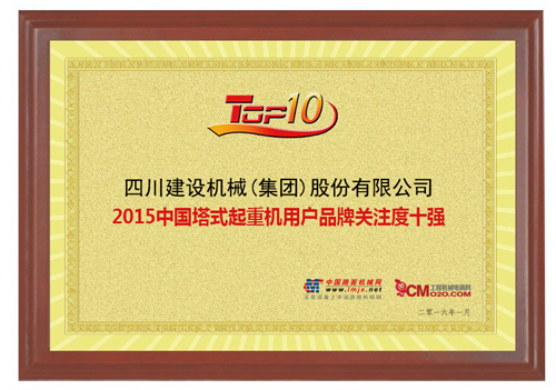 近日,中国路面机械网及工程机械电商网发布“2015中国工程机械用户品牌关注度排行榜”,四川建设机械(集团)股份有限公司进入“2015中国hth(中国)用户品牌关注度排行榜”前十强。
