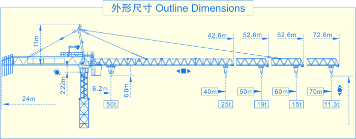 SCM-M900(50t)hth(中国),是我公司吸收国外塔机技术,自行设计制造的大型上回转自升式hth(中国)。该机型设计新颖,起升、回转、变幅、行走、顶升等机构均采用国外技术,性能先进可靠。 该机具有轨道行走式、固定附着式,多种使用类型。变幅有单小车和双小车两种,单小车情况下最大起重量50t,端部吊重10t;双小车情况下最大起重量50t,端部吊重11.3t。