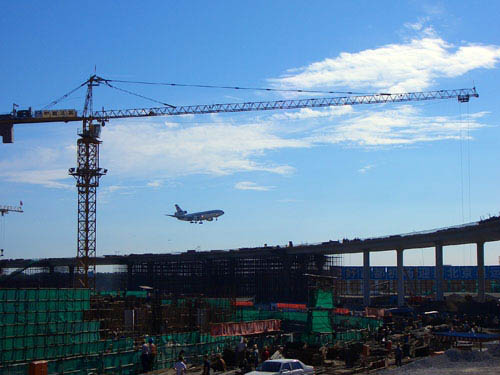 北京首都国际机场,距离市中心25公里,为4F级民用机场,是中国三大门户复合枢纽之一、环渤海地区国际航空货运枢纽群成员、世界超大型机场。北京首都国际机场建成于1958年。1980年1月1日,T1航站楼及停机坪、楼前停车场等配套工程建成并正式投入使用。1999年11月1日,T2航站楼正式投入使用,同时T1航站楼开始停用装修。2004年9月20日,T1航站楼重新投入使用。2008年春,机场扩建工程(T3航站楼)完工。