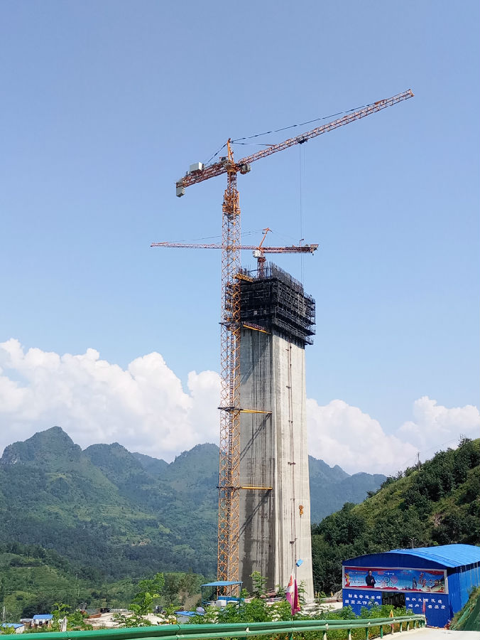 平塘特大桥属于斜拉桥的一种,桥塔由混凝土修建,索塔将建设成钻石形空间塔,即全桥立三个巨型塔体,每座塔的造型均为两个倒A字形的塔柱组合而成,在三个塔的两面又分别架设数十组不锈钢钢索,远处观摩,整座桥好似三颗金光闪闪的巨型“钻石”镶嵌在大桥上,非常的雄伟、瑰丽。其中最大的塔体塔高为328米,这个高度相当于110层高楼,在大桥完工后就将成为高混凝土桥塔的世界第一;在不分桥型的情况下,平塘特大桥的塔高将刷新已建成的桥梁,将成为亚洲第一高桥。